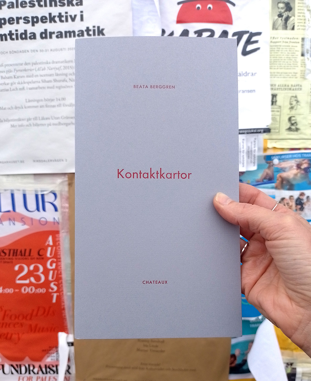 Lördag 13 september kl. 10.30–18: Chateaux medverkar med bokbord på Poesimässan på Medborgarplatsen i Stockholm. Under eftermiddagens program i Tranströmerbiblioteket läser Beata Berggren och Iman Mohammed ur sina nya böcker.